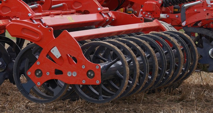 - Fås med enten 2 x ø 550 mm dobbelt u-ringsvalse eller med en 3-rækket kraftig efterharve.